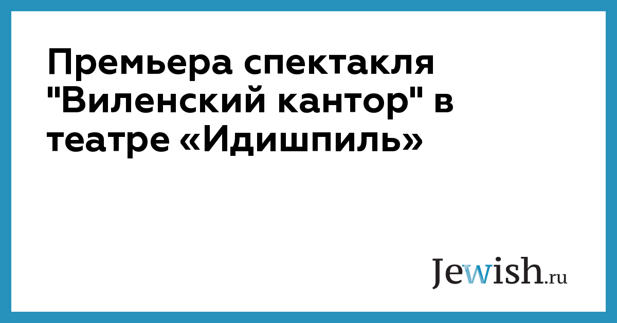 Премьера спектакля "Виленский кантор" в театре «Идишпиль»