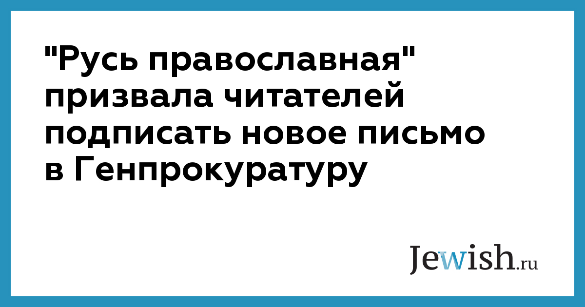 "Русь православная" призвала читателей подписать новое письмо в Генпрокуратуру