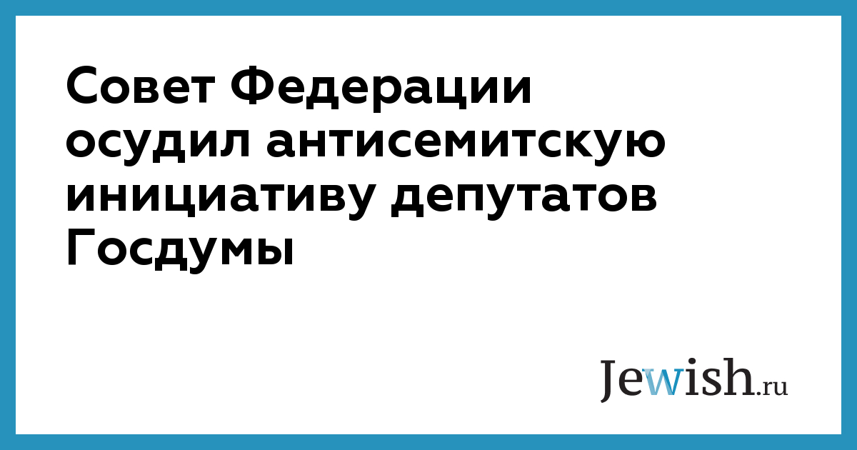 Совет Федерации осудил антисемитскую инициативу депутатов Госдумы
