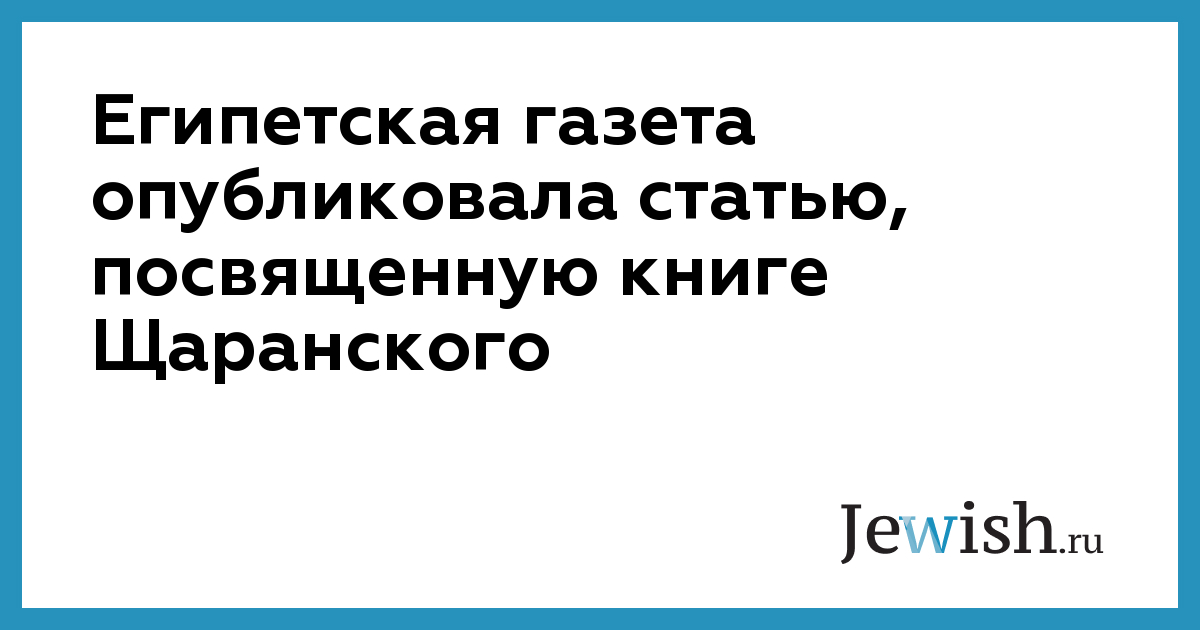 Eгипетская газета опубликовала статью, посвященную книге Щаранского