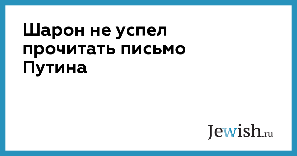 Как отмечает израильская газета «Jerusalem Post», выступая на ежегодной пресс-конференции Ассоциации зарубежной прессы, Шарон сообщил, что он получил во вторник от российского президента Владимира Путина письмо, которое он еще не успел прочитать, информирующее его о решении. «Мы не довольны продажей оружия Сирии, в особенности современного оружия, которое Россия намерена продать Сирии, оружия, которое может оказаться в руках террористических организаций», — отметил Шарон... Подробнее