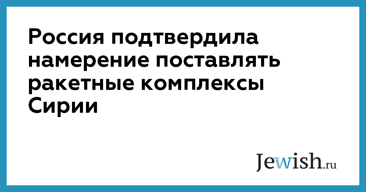 Россия подтвердила намерение поставлять ракетные комплексы Сирии