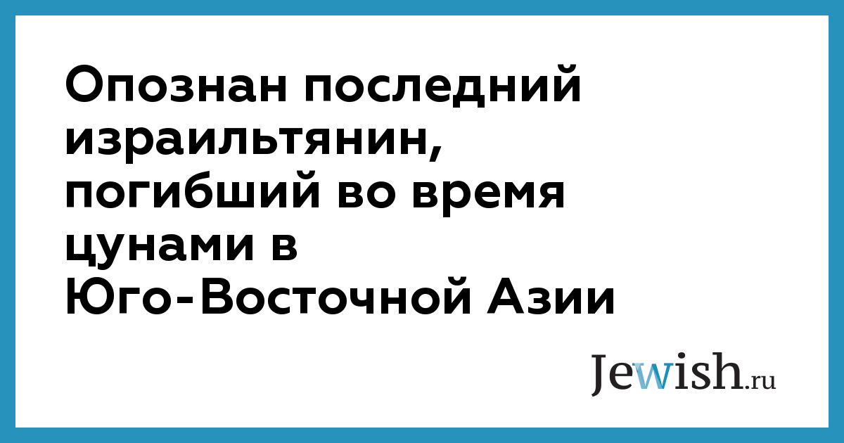 Опознан последний израильтянин, погибший во время цунами в Юго-Восточной Азии