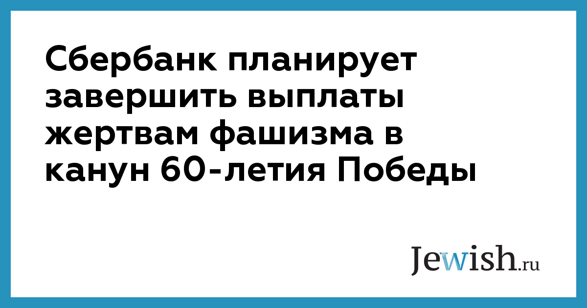 Сбербанк планирует завершить выплаты жертвам фашизма в канун 60-летия Победы