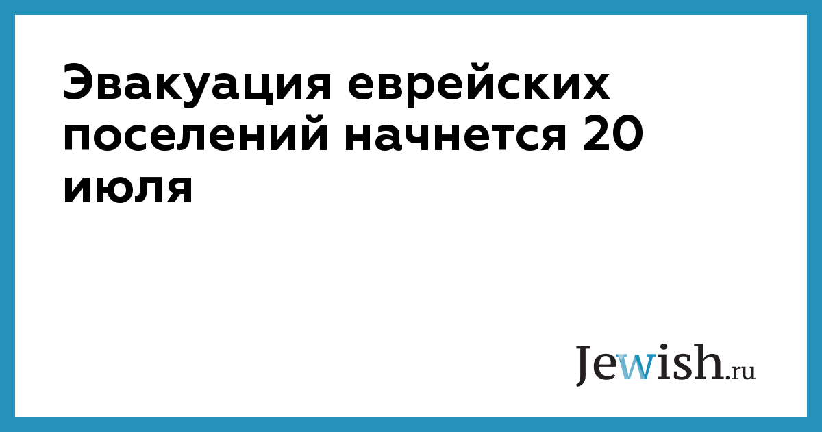 Эвакуация еврейских поселений начнется 20 июля
