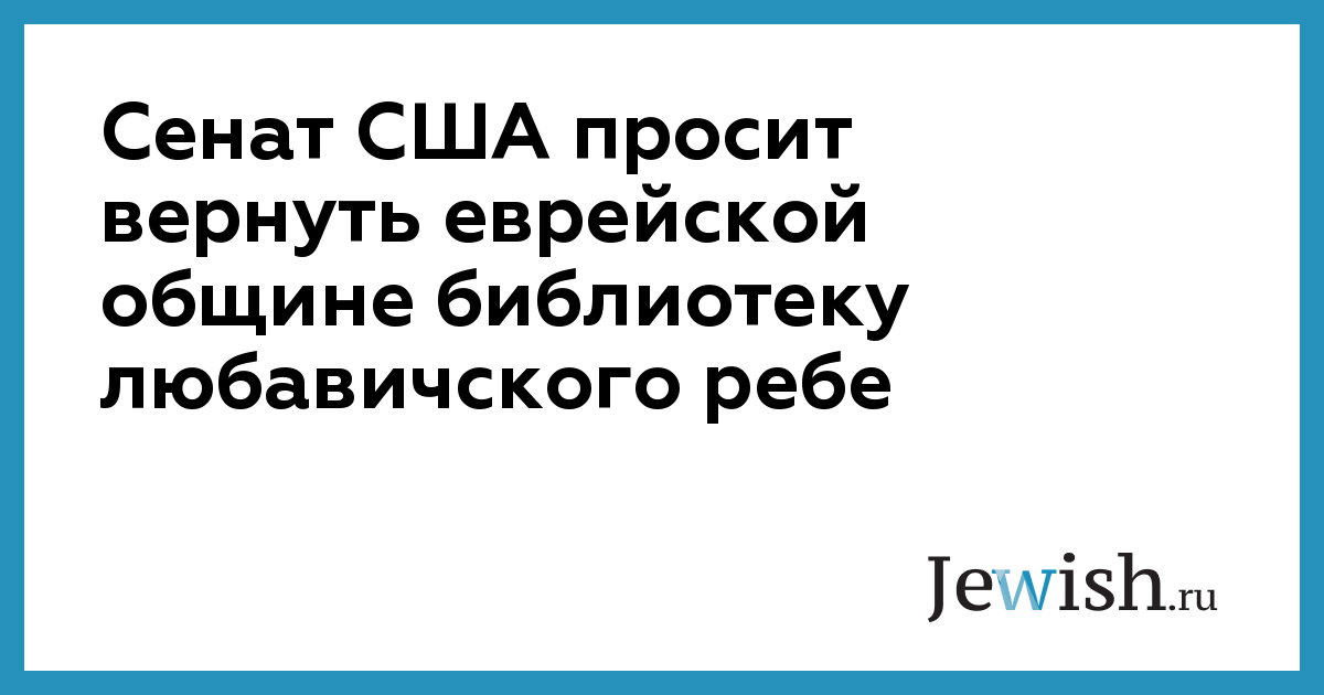 Сенат США просит вернуть еврейской общине библиотеку любавичского ребе