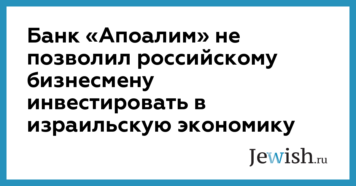 Банк «Апоалим» не позволил российскому бизнесмену инвестировать в израильскую экономику