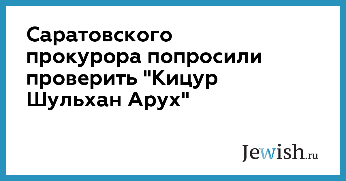 Саратовского прокурора попросили проверить "Кицур Шульхан Арух"