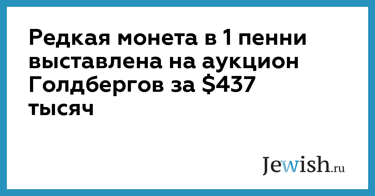 Редкая монета в 1 пенни выставлена на аукцион Голдбергов за $437 тысяч