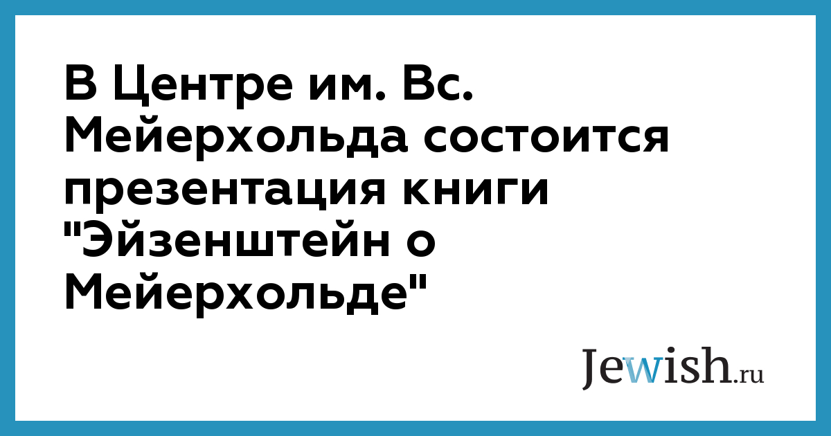 В Центре им. Вс. Мейерхольда состоится презентация книги "Эйзенштейн о Мейерхольде"