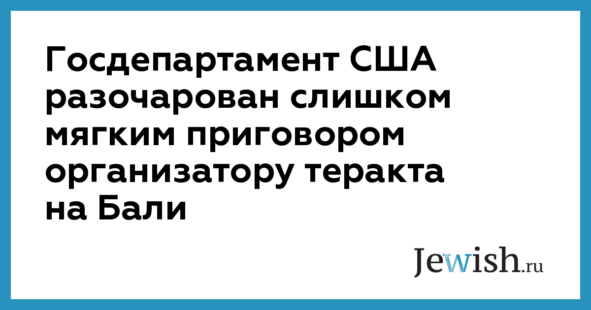 Госдепартамент США разочарован слишком мягким приговором организатору теракта на Бали