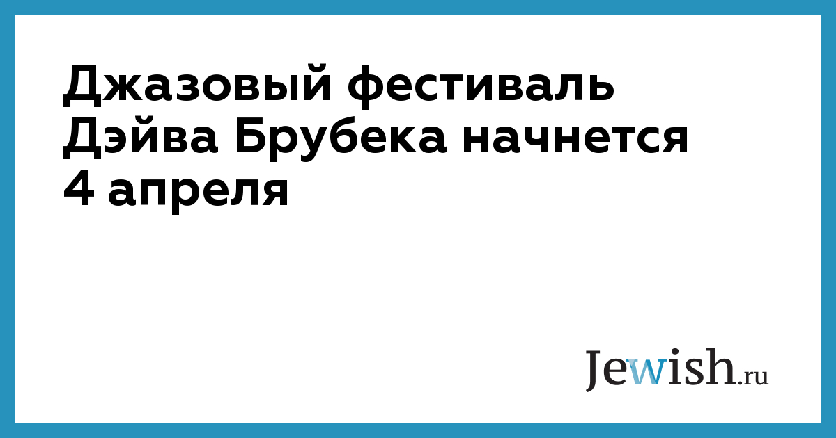 Джазовый фестиваль Дэйва Брубека начнется 4 апреля