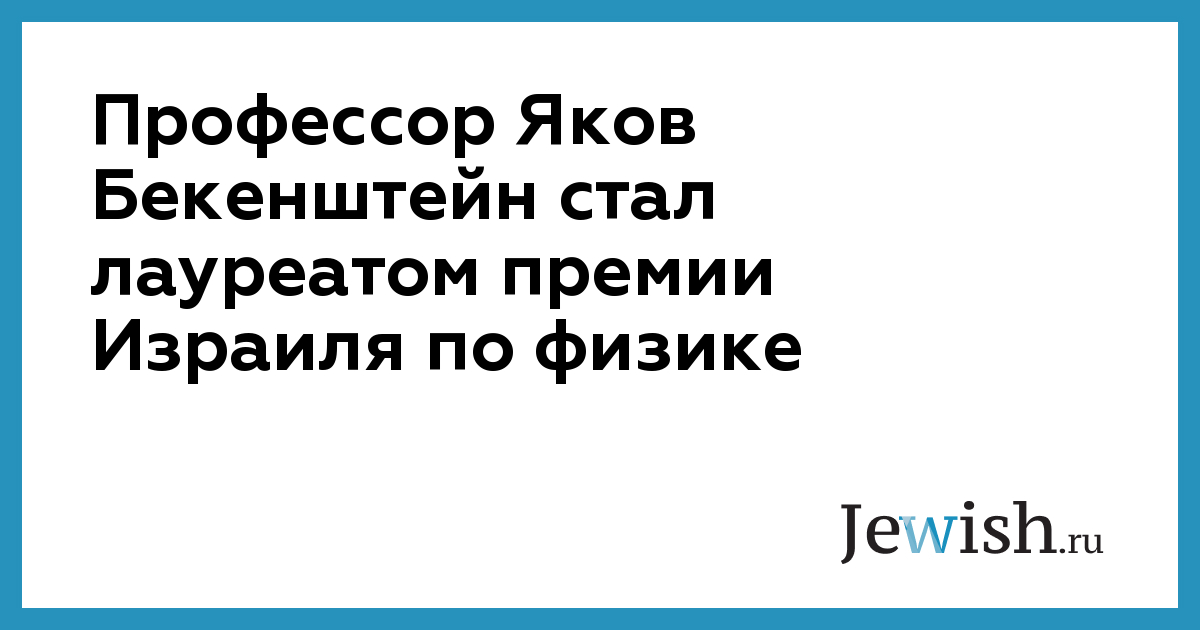 Профессор Яков Бекенштейн стал лауреатом премии Израиля по физике