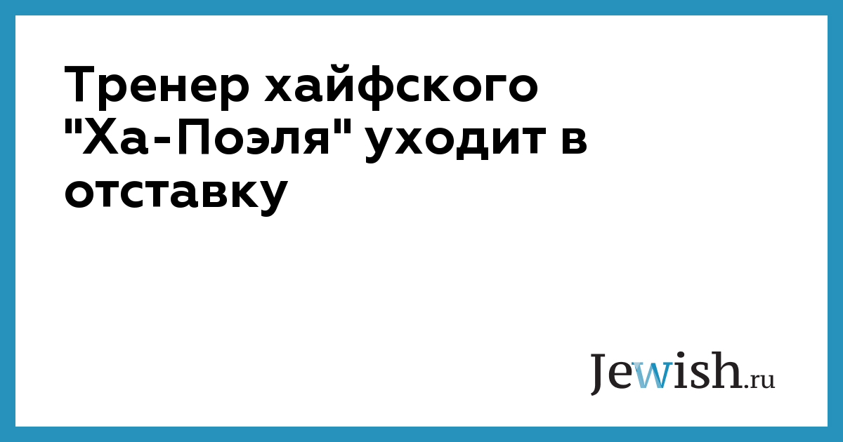 Тренер хайфского "Ха-Поэля" уходит в отставку