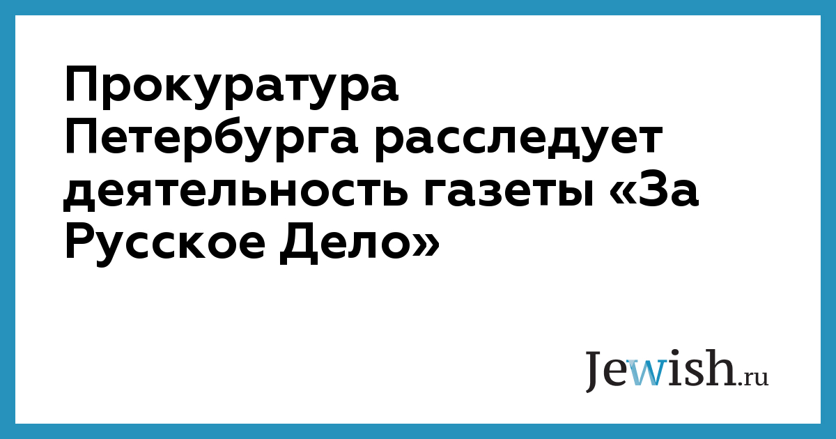 Прокуратура Петербурга расследует деятельность газеты «За Русское Дело»
