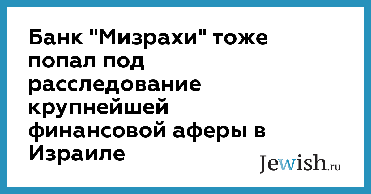 Банк "Мизрахи" тоже попал под расследование крупнейшей финансовой аферы в Израиле