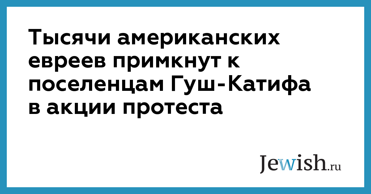 Тысячи американских евреев примкнут к поселенцам Гуш-Катифа в акции протеста