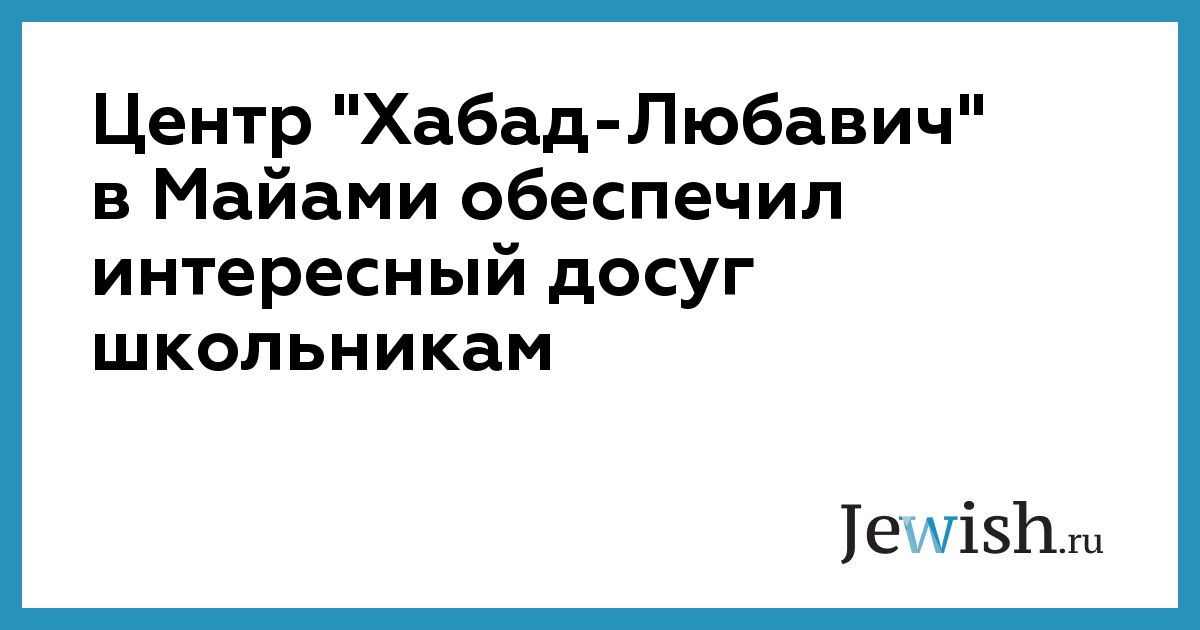 Центр "Хабад-Любавич" в Майами обеспечил интересный досуг школьникам
