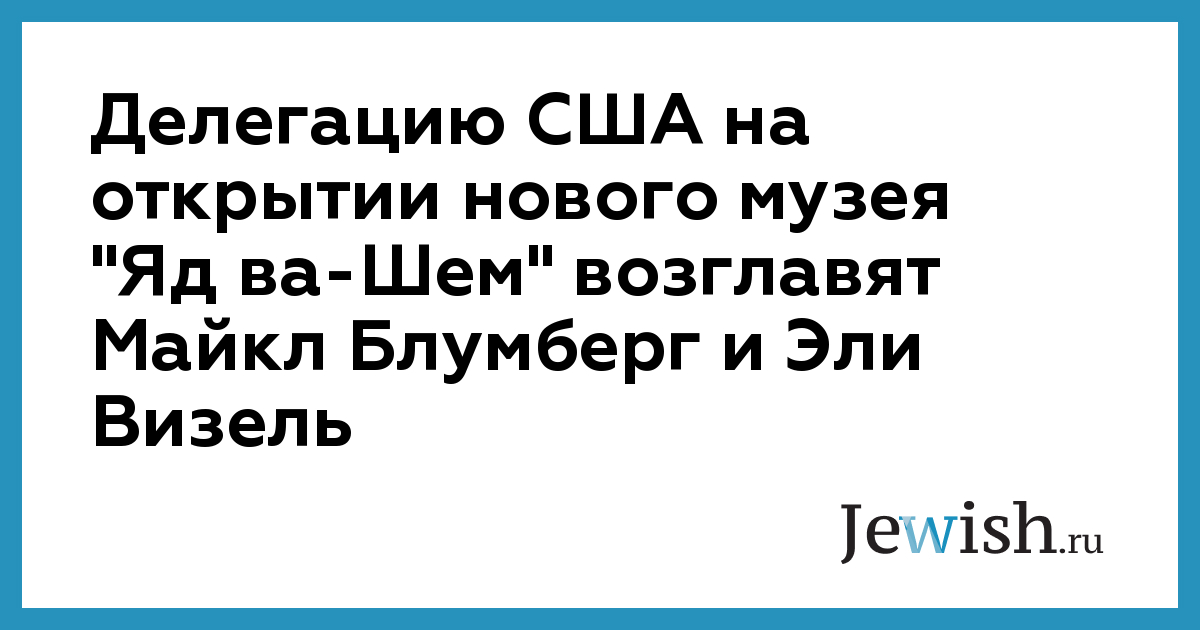 Делегацию США на открытии нового музея "Яд ва-Шем" возглавят Майкл Блумберг и Эли Визель