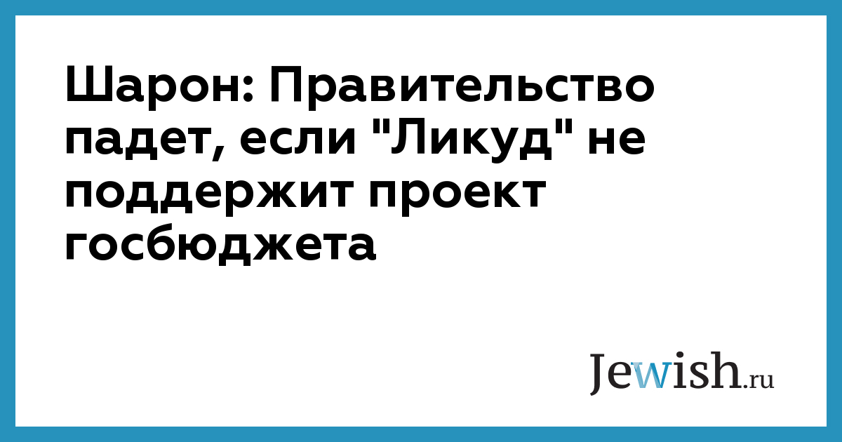 Шарон: Правительство падет, если "Ликуд" не поддержит проект госбюджета