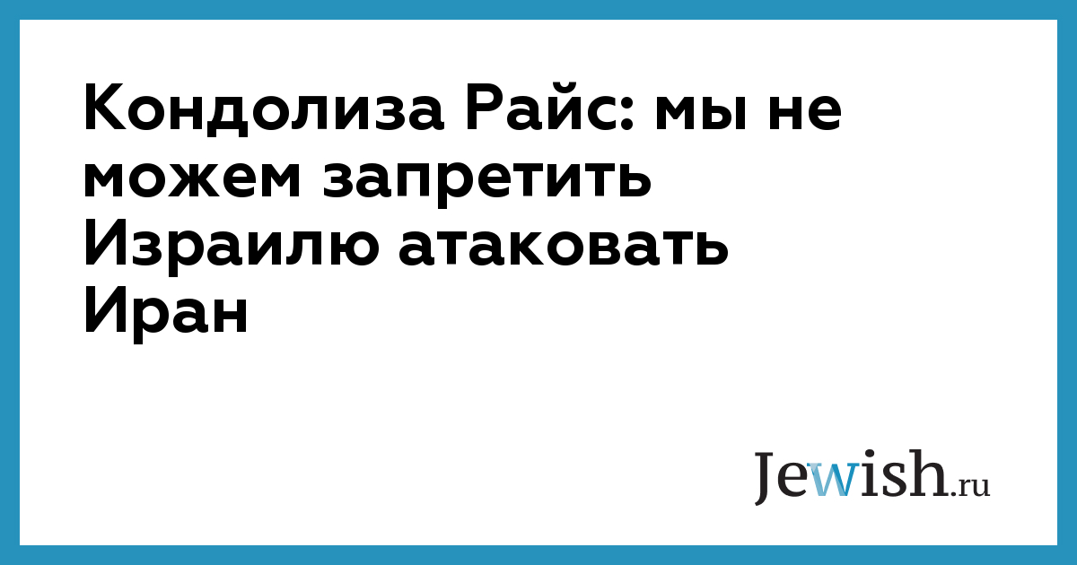 Кондолиза Райс: мы не можем запретить Израилю атаковать Иран