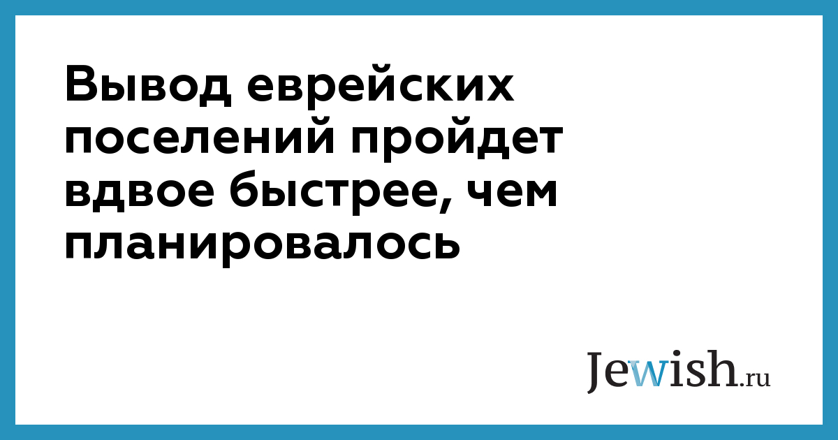 Вывод еврейских поселений пройдет вдвое быстрее, чем планировалось