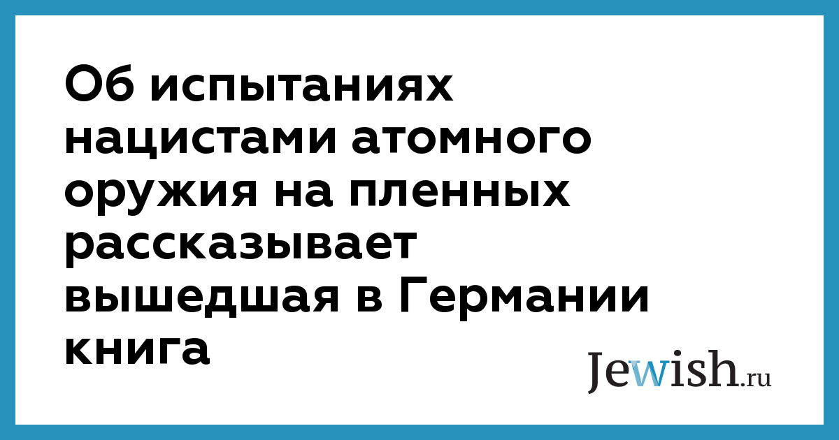 Об испытаниях нацистами атомного оружия на пленных рассказывает вышедшая в Германии книга