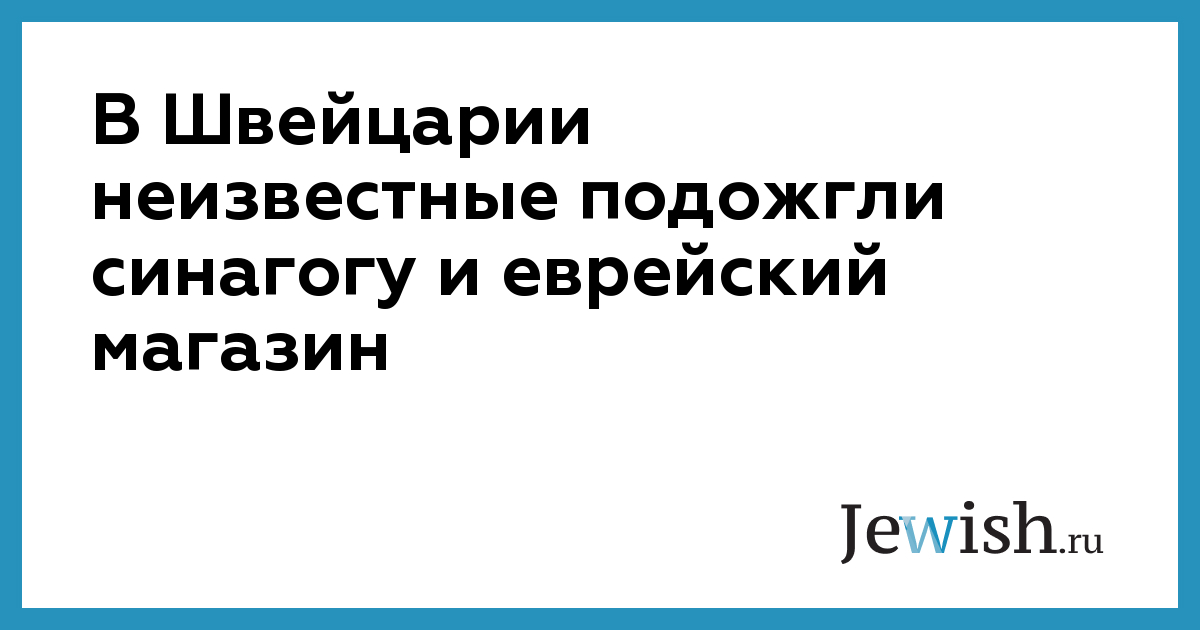 В Швейцарии неизвестные подожгли синагогу и еврейский магазин
