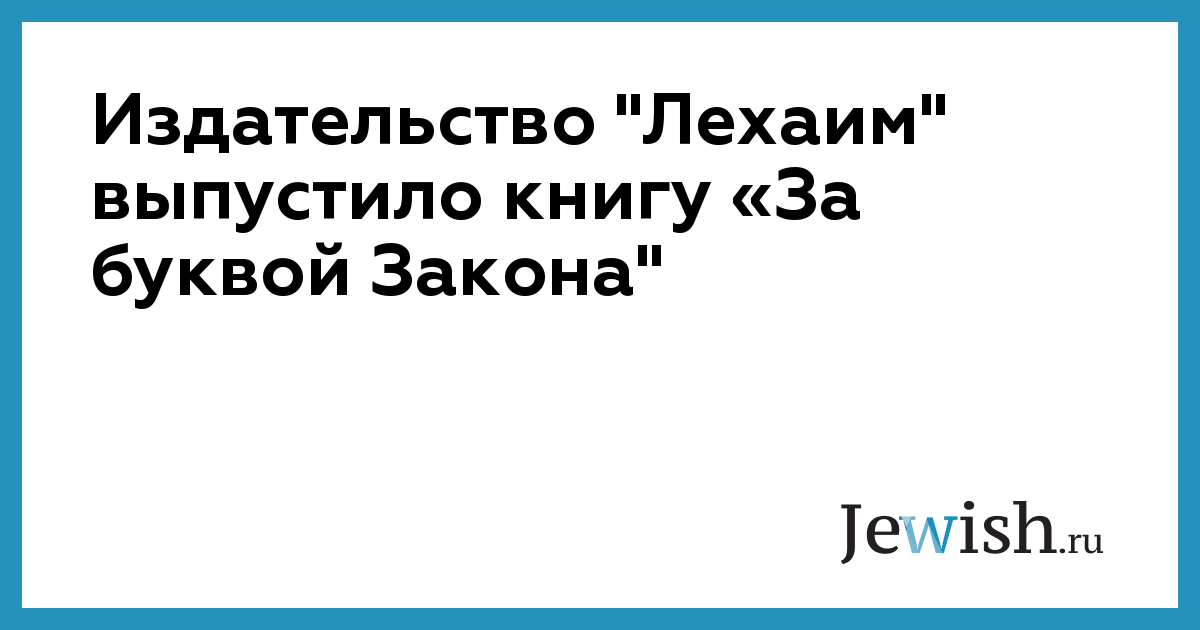 Издательство "Лехаим" выпустило книгу «За буквой Закона"