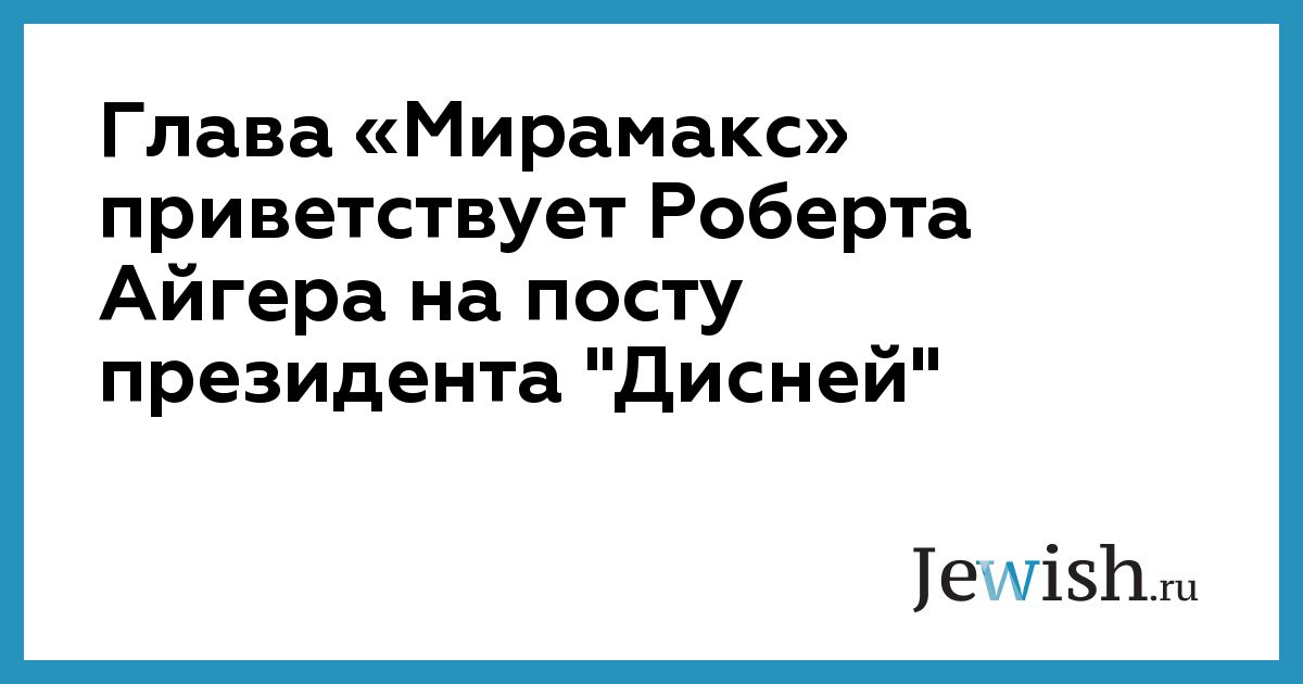 Глава «Мирамакс» приветствует Роберта Айгера на посту президента "Дисней"