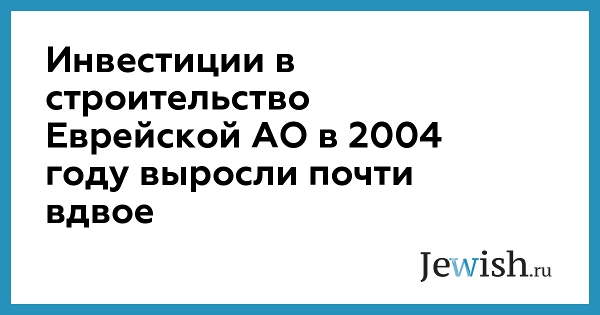 Инвестиции в строительство Еврейской АО в 2004 году выросли почти вдвое