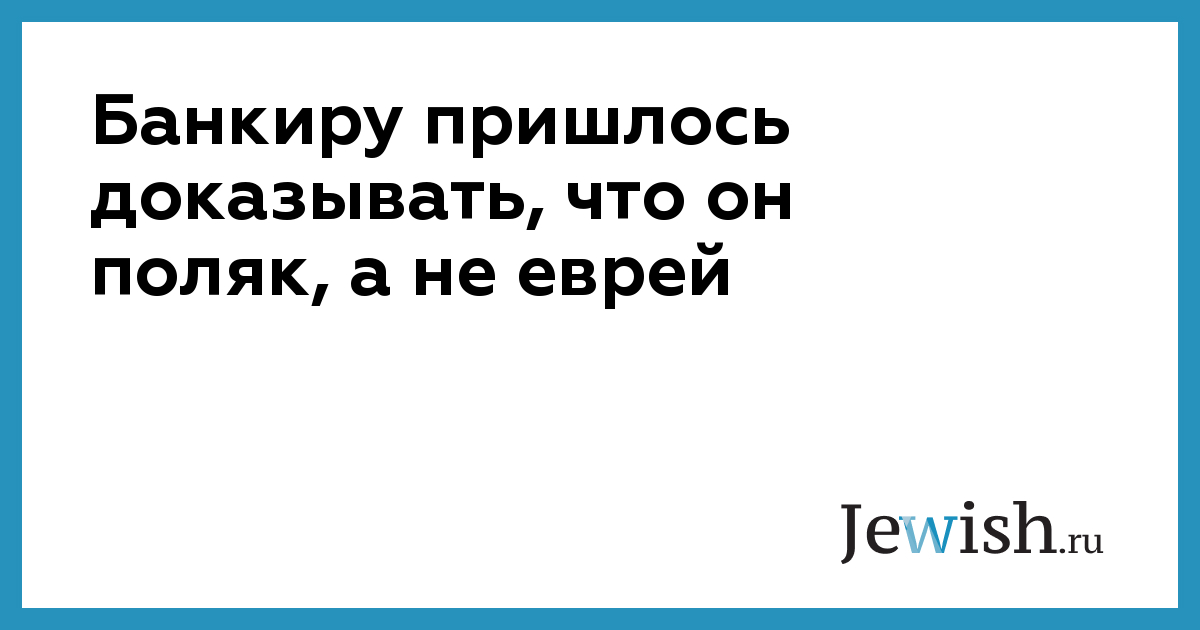 Банкиру пришлось доказывать, что он поляк, а не еврей