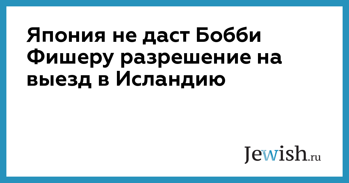 Япония не даст Бобби Фишеру разрешение на выезд в Исландию
