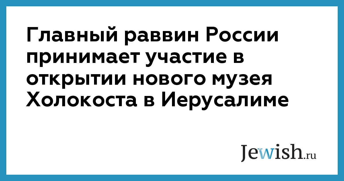 Главный раввин России принимает участие в открытии нового музея Холокоста в Иерусалиме