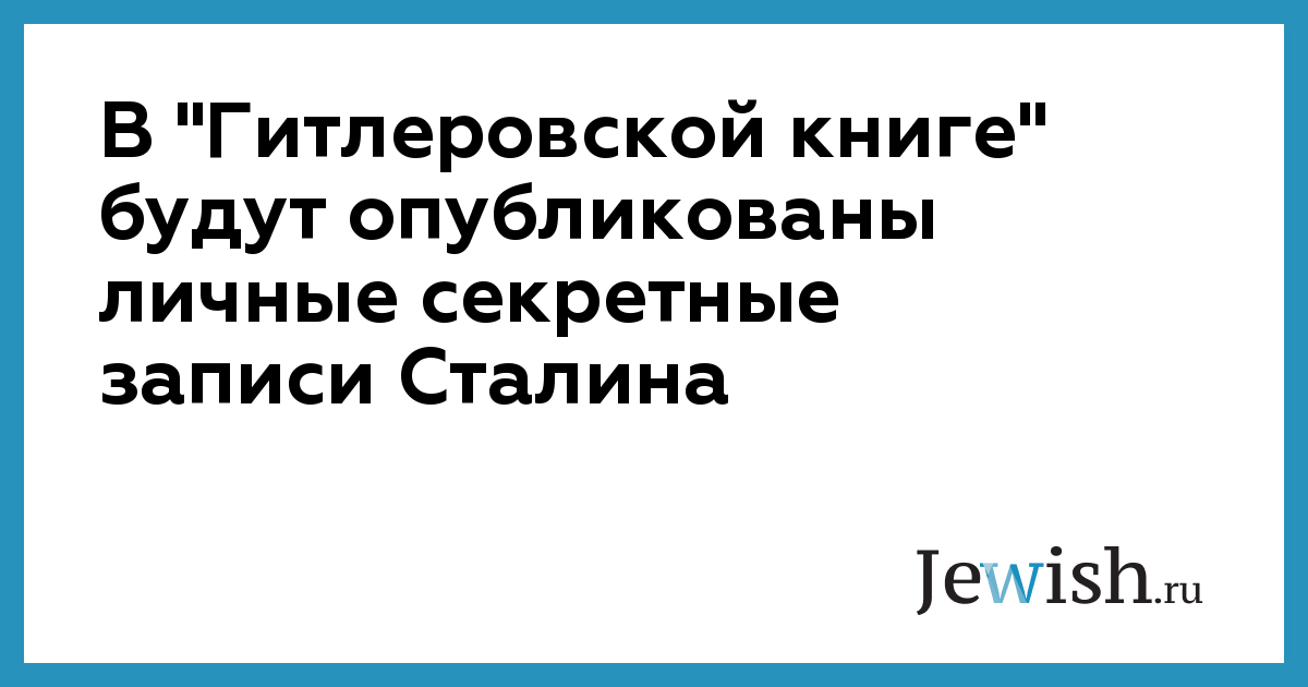В "Гитлеровской книге" будут опубликованы личные секретные записи Сталина