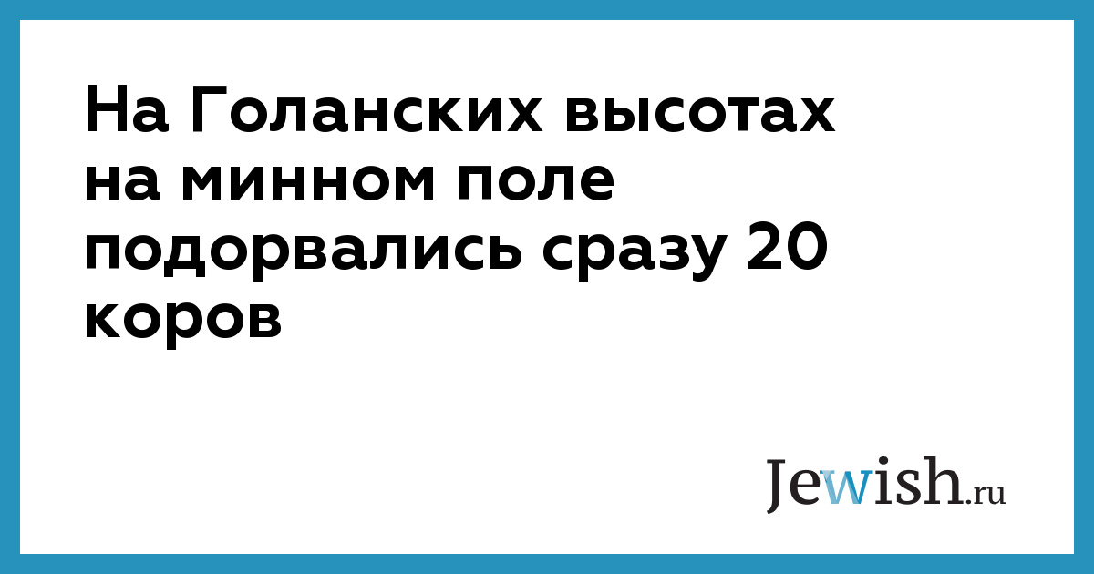 «Из года в год таким образом на Голанских высотах погибают десятки коров, — рассказал глава израильской организации скотоводов Хаим Даян. — У меня тоже случалось подобное. На Голанских высотах у меня есть стадо, и несколько лет назад 18 моих коров погибли, подорвавшись на минах. Когда ограждение вокруг минного поля ломается, коровы несутся на мины, потому что там никогда не было выгона, и изобилие травы влечет туда коров».
