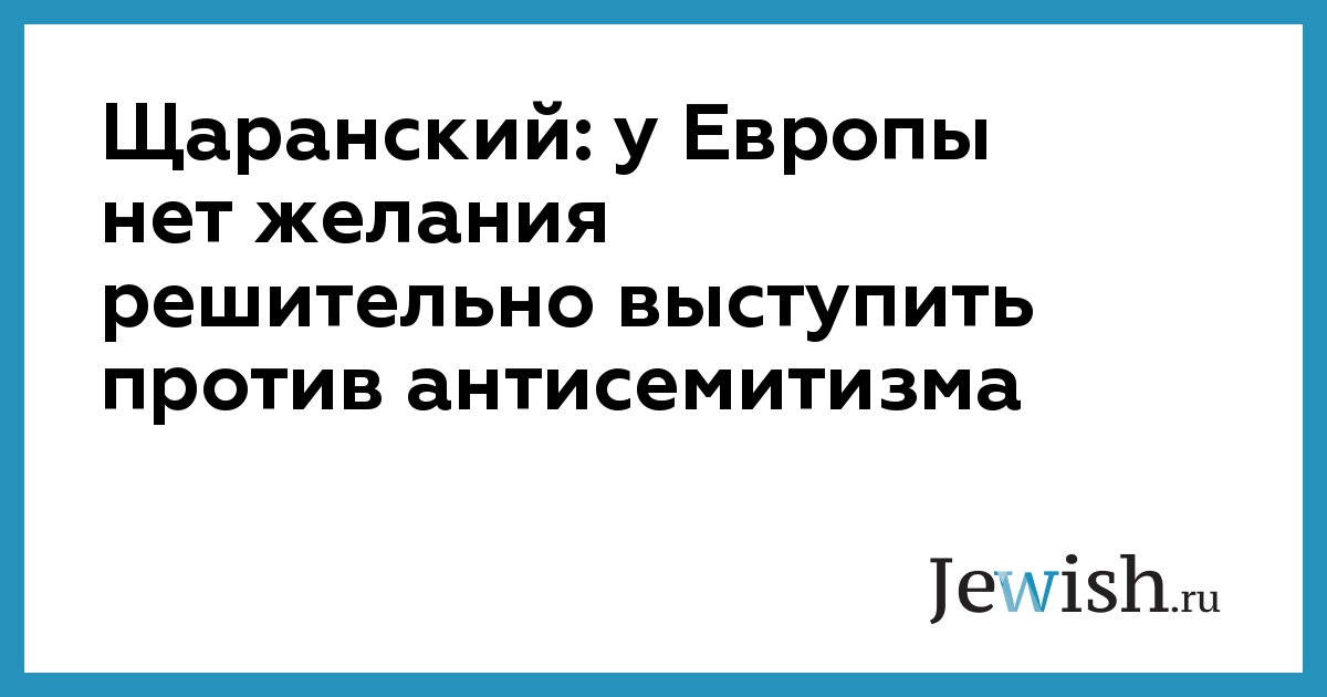 Щаранский: у Европы нет желания решительно выступить против антисемитизма