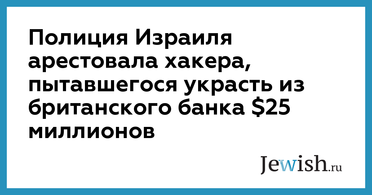Полиция Израиля арестовала хакера, пытавшегося украсть из британского банка $25 миллионов