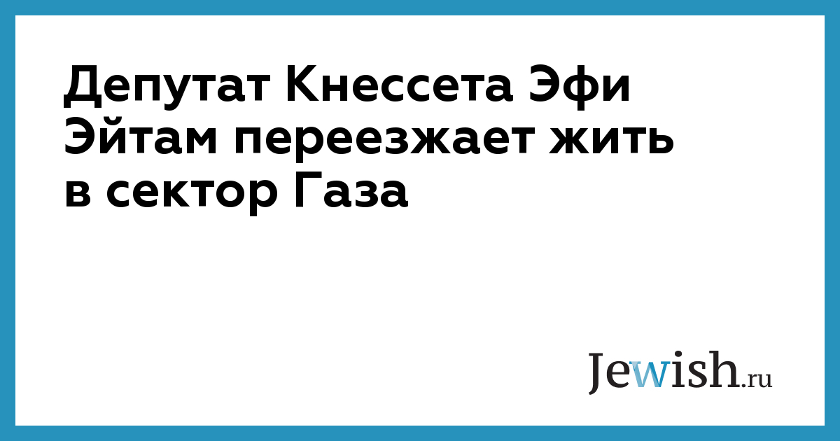 Депутат Кнессета Эфи Эйтам переезжает жить в сектор Газа