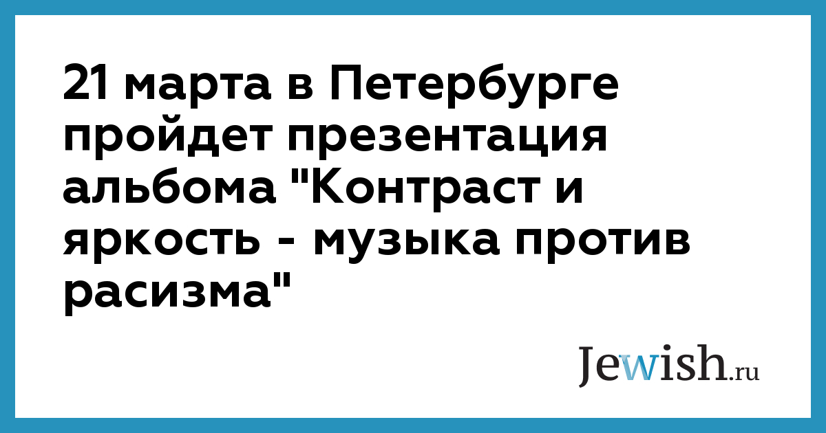 21 марта в Петербурге пройдет презентация альбома "Контраст и яркость — музыка против расизма"