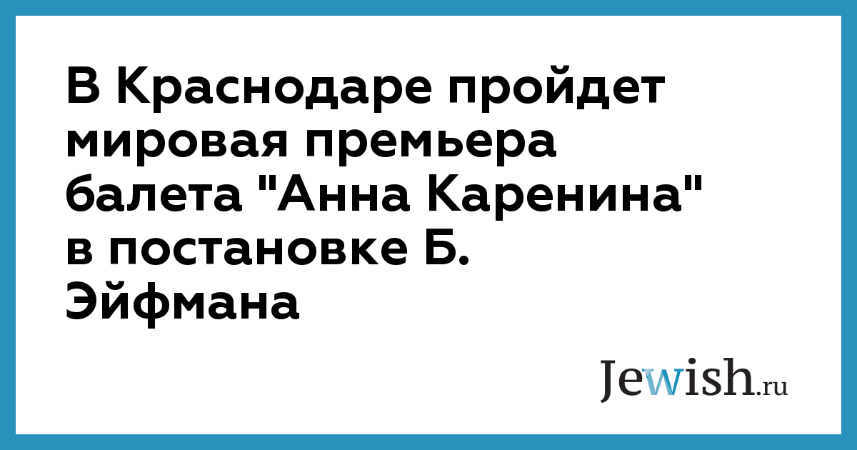 В Краснодаре пройдет мировая премьера балета "Анна Каренина" в постановке Б. Эйфмана