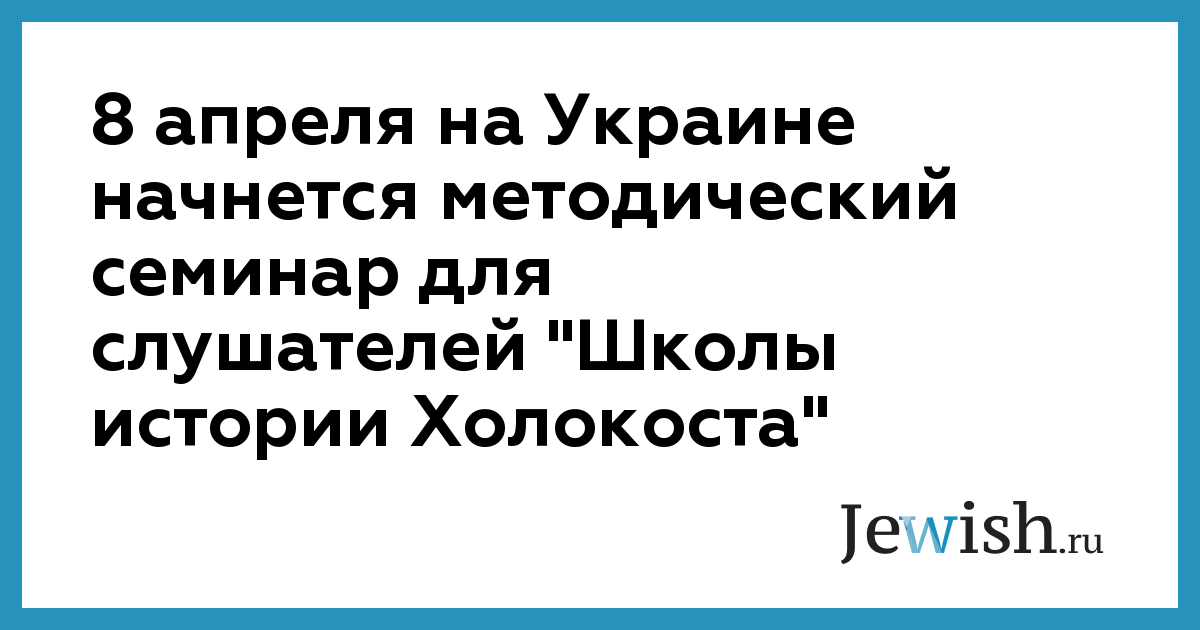 8 апреля на Украине начнется методический семинар для слушателей "Школы истории Холокоста"