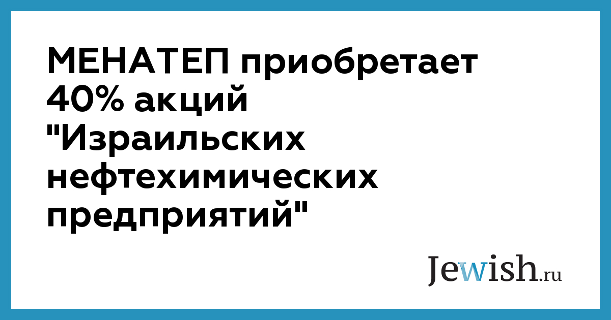 МЕНАТЕП приобретает 40% акций "Израильских нефтехимических предприятий"