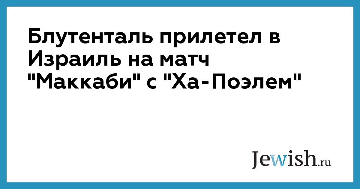 Блутенталь прилетел в Израиль на матч "Маккаби" с "Ха-Поэлем"