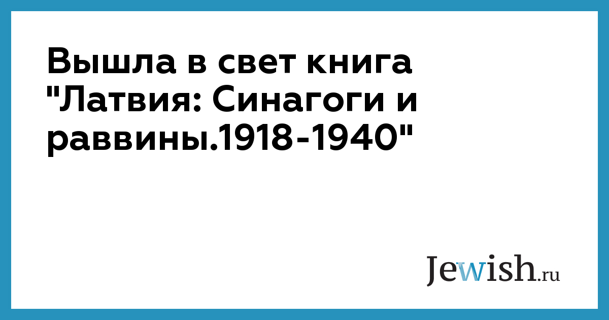 Вышла в свет книга "Латвия: Синагоги и раввины.1918-1940"