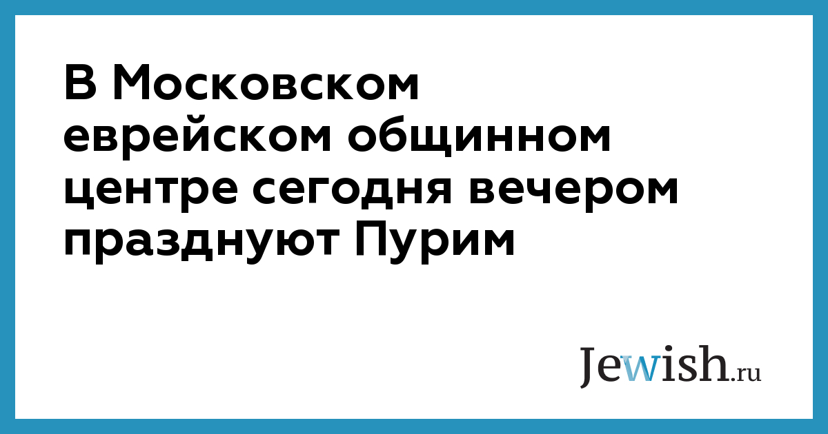 В Московском еврейском общинном центре сегодня вечером празднуют Пурим