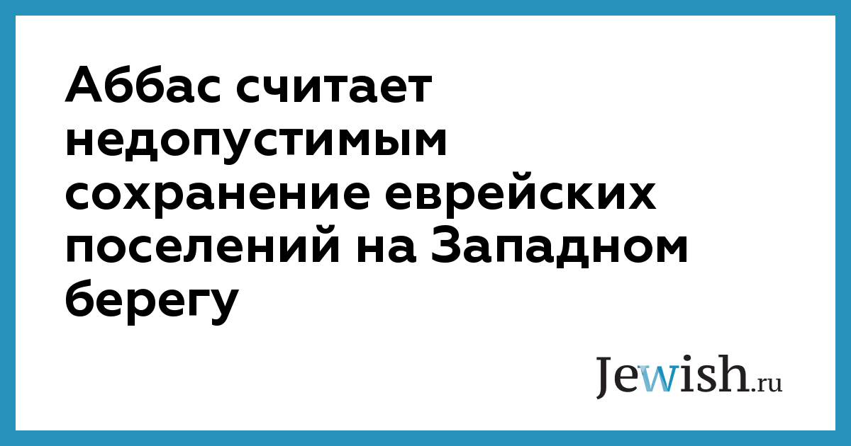 Аббас считает недопустимым сохранение еврейских поселений на Западном берегу