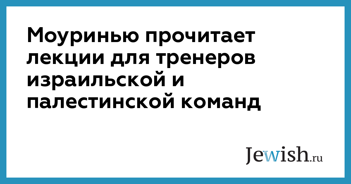Моуринью прочитает лекции для тренеров израильской и палестинской команд