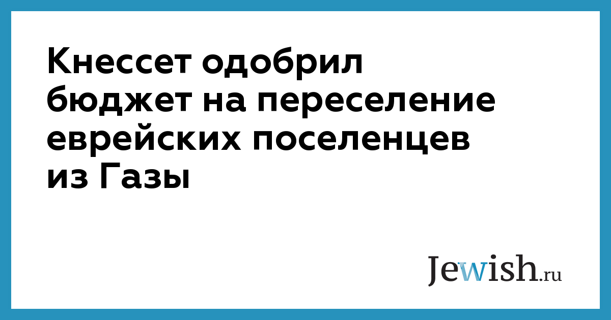 Кнессет одобрил бюджет на переселение еврейских поселенцев из Газы