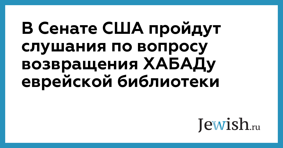 В Сенате США пройдут слушания по вопросу возвращения ХАБАДу еврейской библиотеки